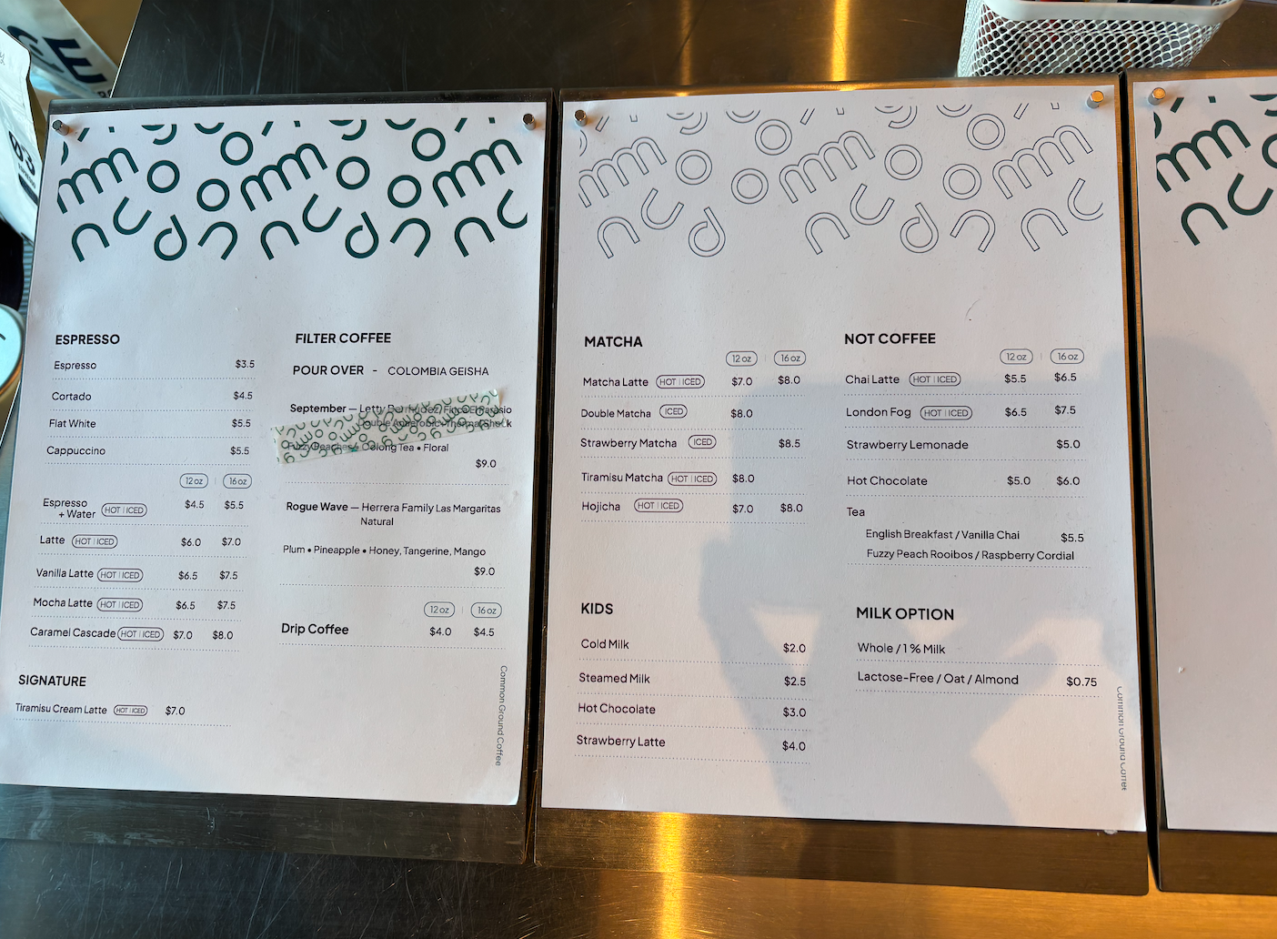 Common Ground’s drink menu.